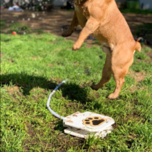 My 9mo old lab loves this! However she managed to break the spring in the first hour by picking it up and moving it around the yard. Tried creative engineering, but... I'm still trying to make it last. She loves playing with it for short periods till she finds a way to break my fixes.