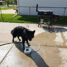My buddy, Foster, loves water! Normally, in the summer, I will go outside with him and hold the hose up and let him chase the water. He loves it but I can't do that as often as I'd like so the product is definitely what he needed.