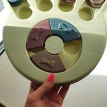 The toy was a little more than I imagined. It was packed in a cardboard box, and in a puppy, so it came whole and unstable. The segments are very easy to close and open, the dog in 5 minutes has time to open-close 10 times, hoping that he somewhere missed the tasty)