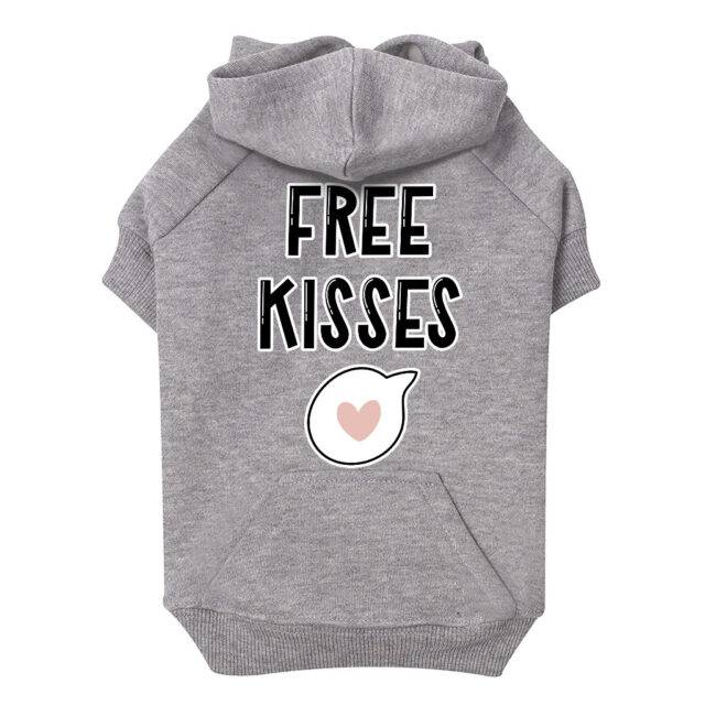 Free Kisses Dog Hoodie with Pocket - Word Print Dog Coat - Minimalist Dog Clothing Dog Clothing