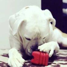 My dog loves this. She is a high drive German Shepherd, and we use this for her training reward. Will not hesitate to order another when she wears this one out.