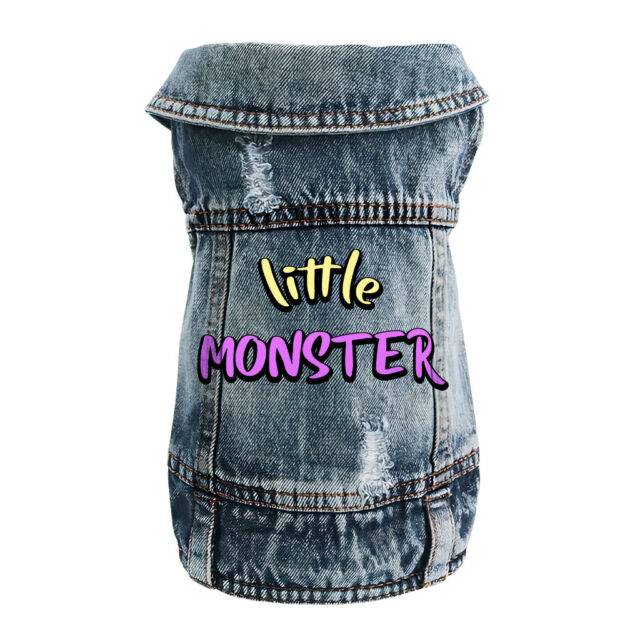 Little Monster Dog Denim Vest - Unique Dog Denim Jacket - Word Print Dog Clothing Dog Clothing Pet Products